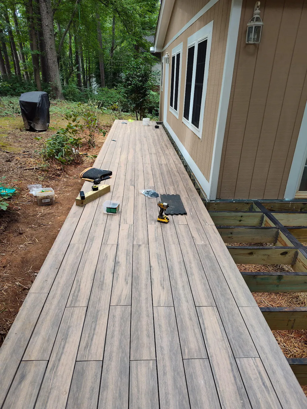 Just finished phase one deck framing of a two deck project and stated installing the stone decking. Absolutely love the way it is turning out and it looks great. Both deck will not be complete for about 2 months.